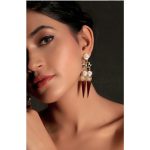 The Armory Earrings make a trendy yet glamorous impression. 3D cut wooden earrings with Mother of Pearl stone and Aqua And Dark Blue enamelling, will add a bold finishing touch to your look.