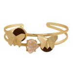 The cuff dazzles and exudes delicate femininity with a distinctive hint of flamboyance while giving it a spring touch with the butterfly and rose quartz.