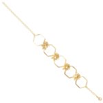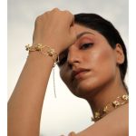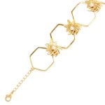 The cuff dazzles and exudes delicate femininity with a distinctive hint of flamboyance. Handcrafted in brass, pearl and 18k gold plating, this piece has an adjustable chain at the back to fit your wrist perfectly.