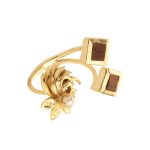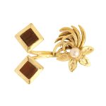 Minimal yet bold, a piece that’s adds delicacy while giving an oomph factor to your outfit. Its adorned with pearl, wood, brass and 16k Gold plating.