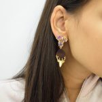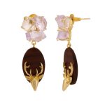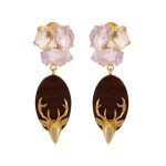 This pair comes with an intricate deer design finished with Amethyst stones and 14 k gold plating. The ferocious deer along with the raw amethysts give the design a bold yet dainty look.