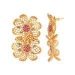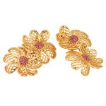 Introducing our radiant GIRASOLE danglers, an exquisite ode to the sunflower. Meticulously fashioned from brass, luxuriously gilded with 20k gold plating, and elegantly adorned with enchanting pink cz stones, this masterpiece beckons you to explore boundless avenues of personal adornment and timeless style.