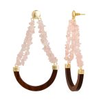 Delicately designed, these Rose quartz Swing danglers can add atyle to any outfit.Hand Finished with 14 k gold plating and adorned with rose quatrz chips, this ear piece is a constant reminder of glamor and romance.