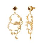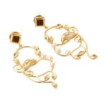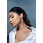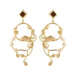 Designed to accent and showoff your Indian or western attire, the Wilsons Paradise Earring is a perfect accessory. The alluring design is uniquely handcrafted in brass accentuated with 18k gold plating, pearls, and mini piece of wood at the top.